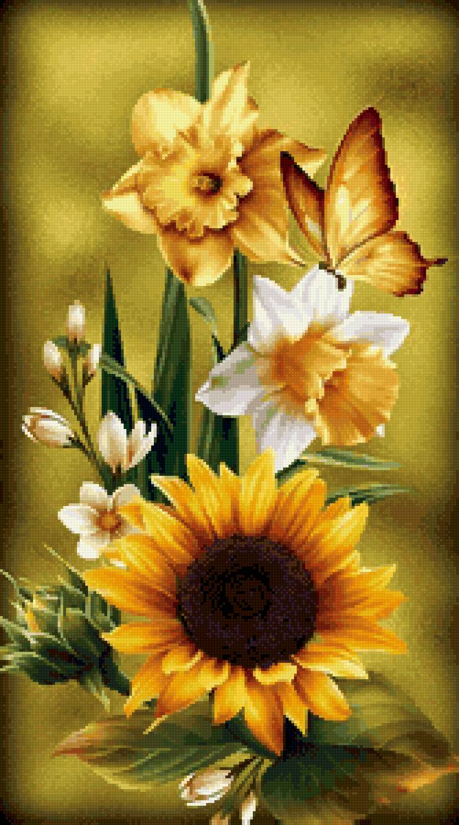 Схемы вышивки, похожие на «подсолнух и нарциссы» (№2679984) по сюжету