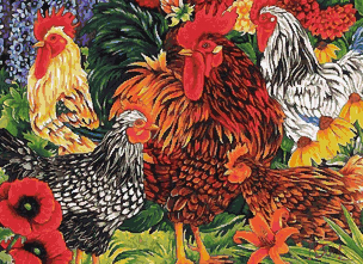 Схема вышивки «петухи» (№2680023)