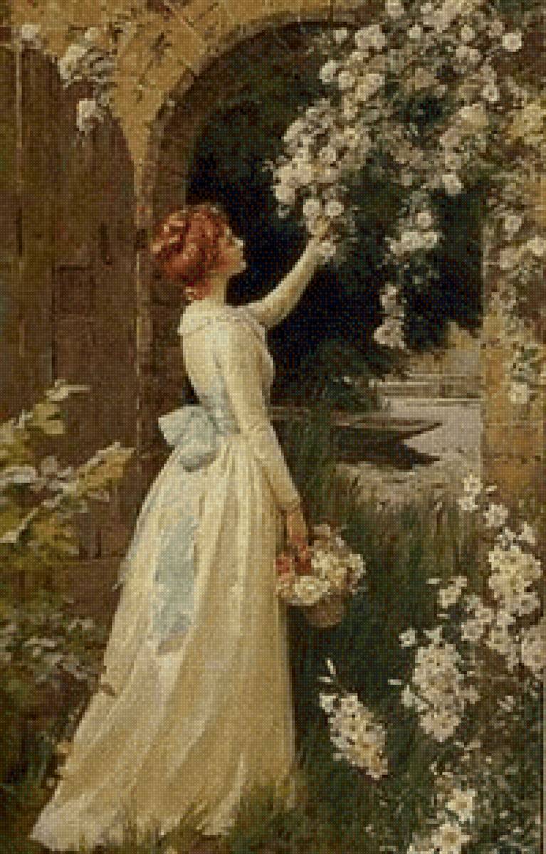 Схема вышивки «Девушка и розы» (№2693020)