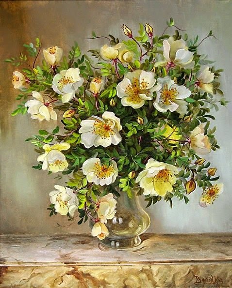 Теги: цветы, кувшин, натюрморт, живопись, шиповник, букет.