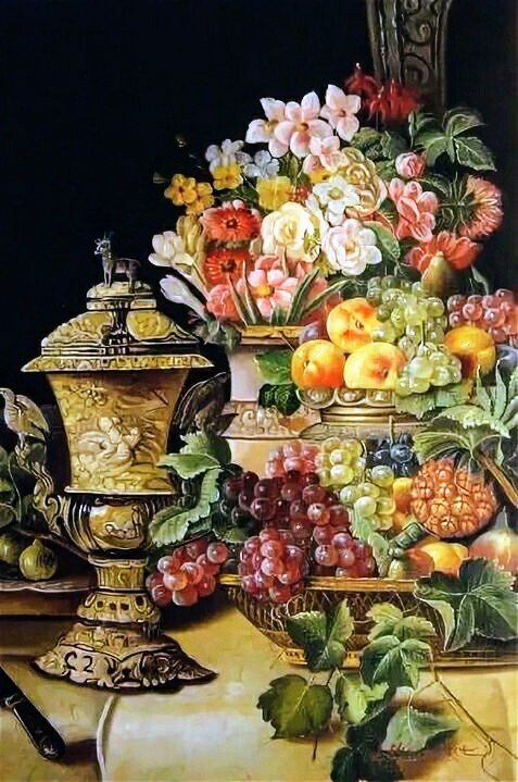 Теги: букет, георгины, натюрморт, цветы, яблоки, осенний натюрморт.