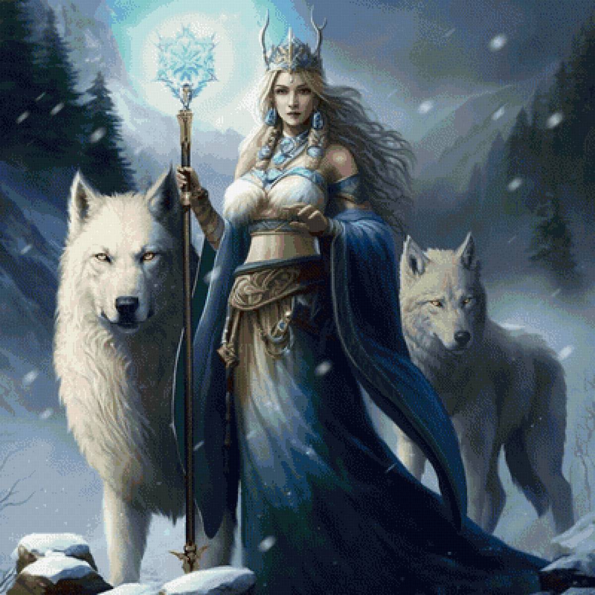 Схема вышивки «девушка и волки» (№2720221)