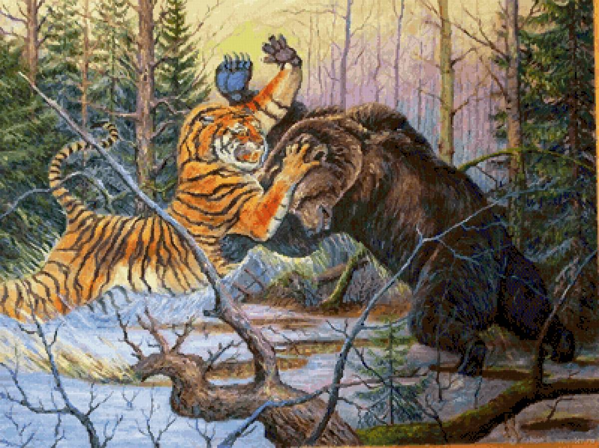 Схемы вышивки, похожие на «Кто хозяин в тайге?» (№2723621) по сюжету