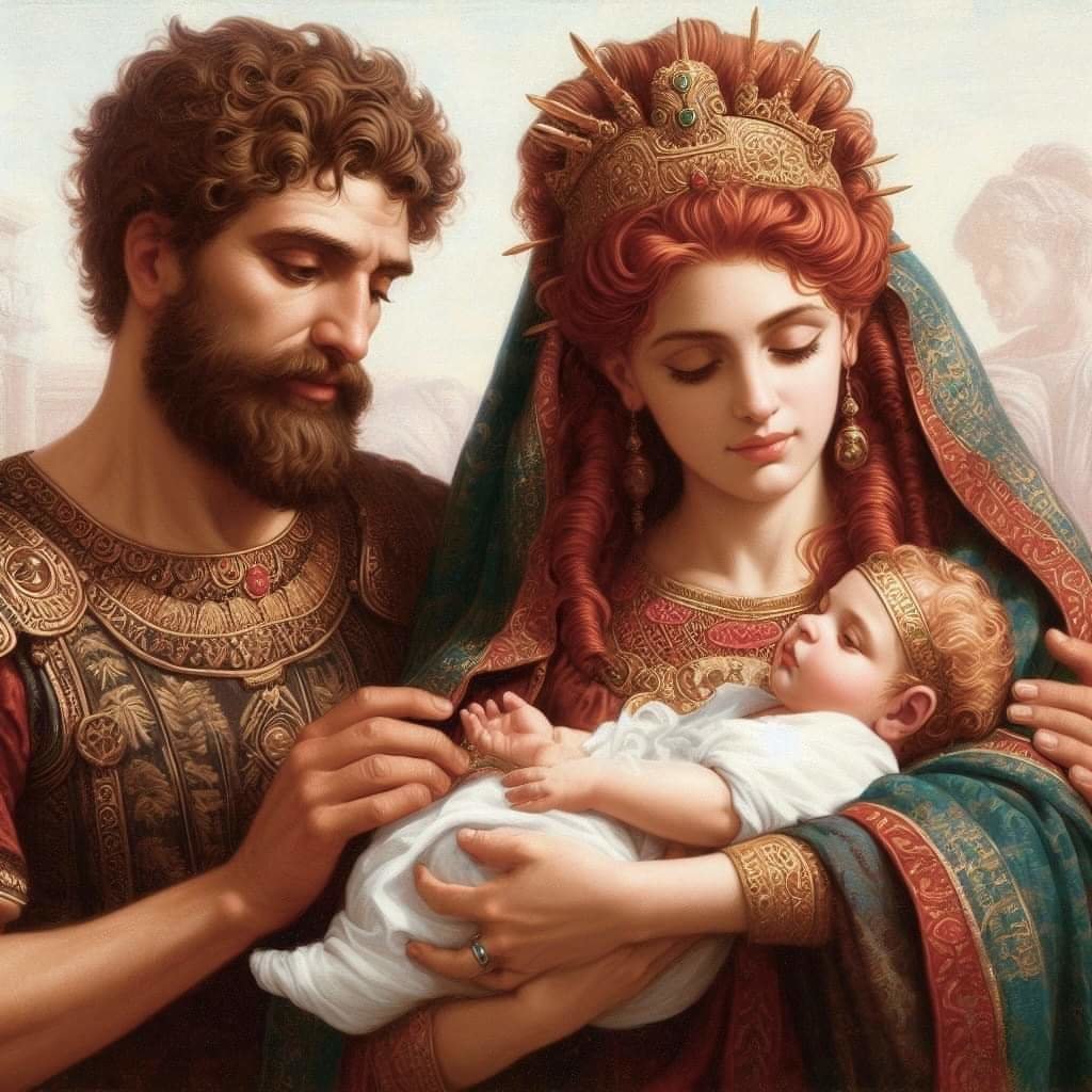 Предположительно, это Одиссей, Пенелопа и малыш Телемах. Настолько понравилось, что даже заначил