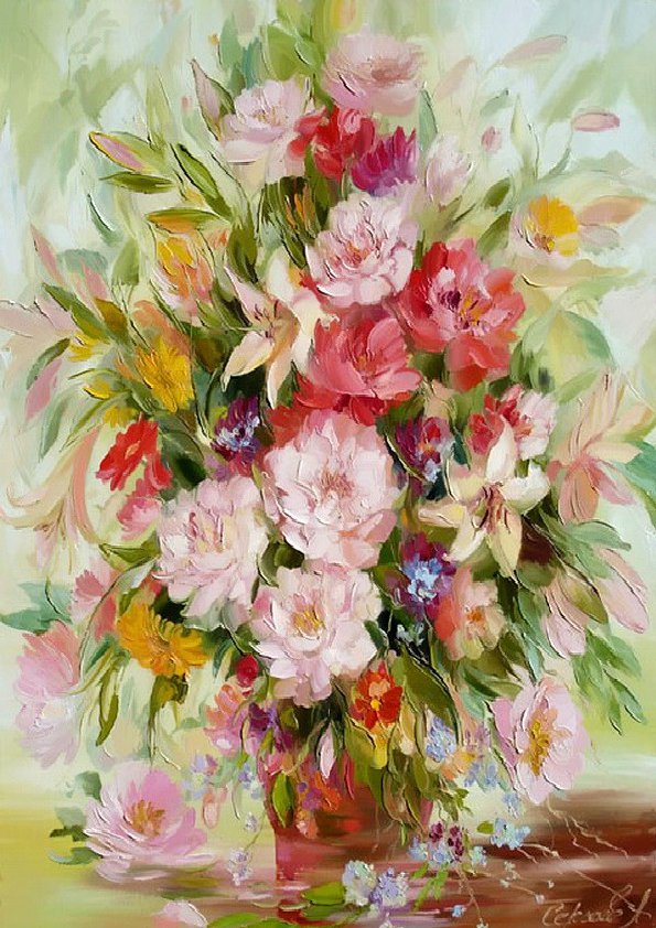 Теги: цветы, живопись, натюрморт, букет, розы, ваза.