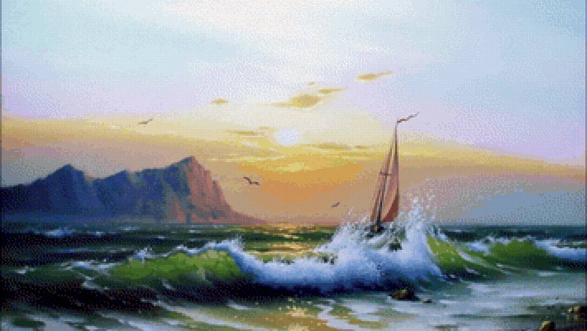 Схема вышивки «Парусник в море» (№2726666)