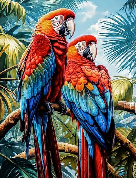 Теги: попугаи, картина, пара, природа, ветка, птицы.