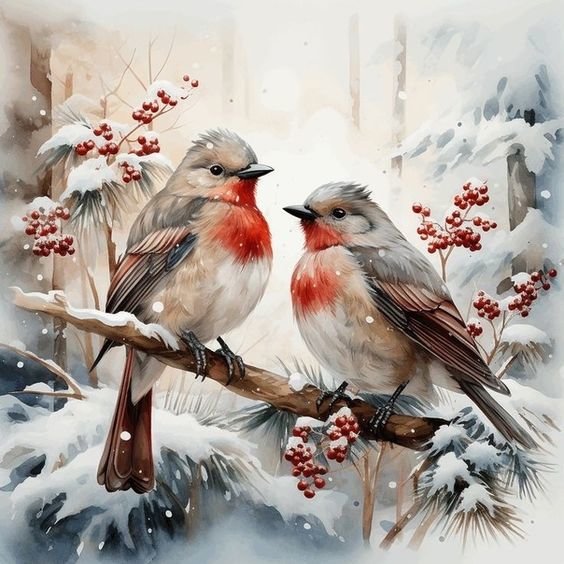 Теги: дерево, птицы, дом, зима, повозка, люди.