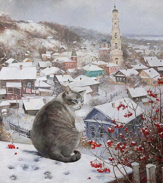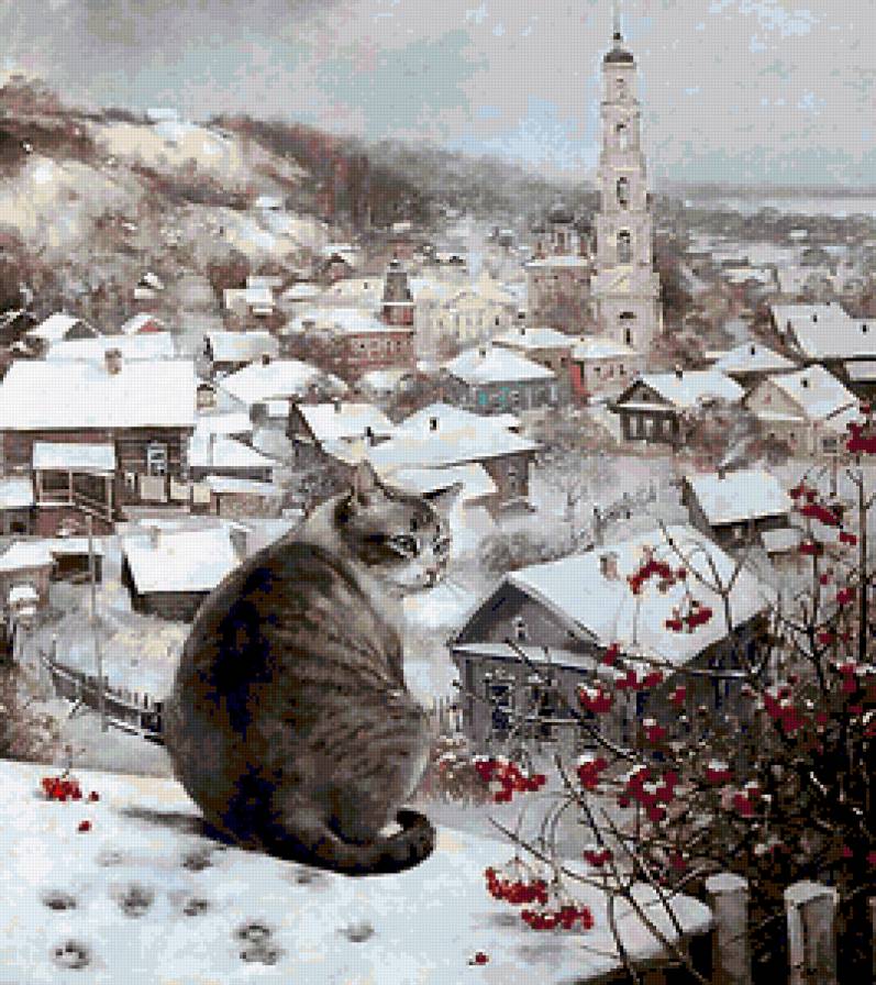 Теги: старый город, пейзаж, лршади, зима, люди, картина.