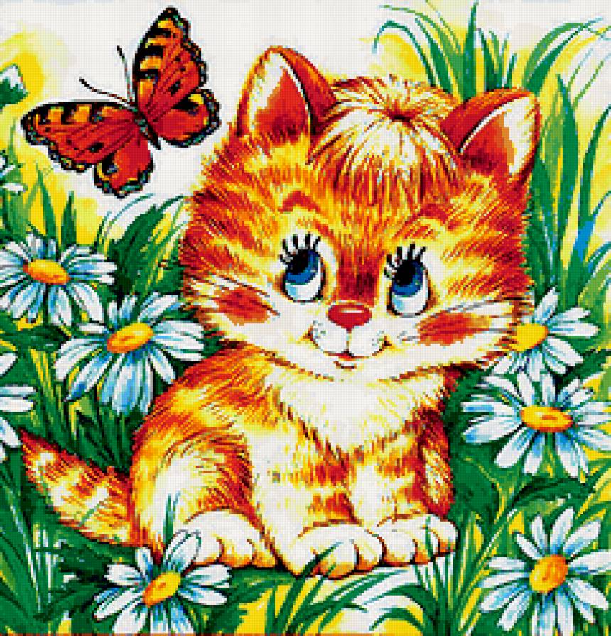 Теги: бабочка, природа, домашние любимцы, живопись, котенок, кузнечик, кот.