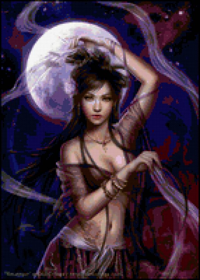 Схема вышивки «девушка и луна» (№278621)