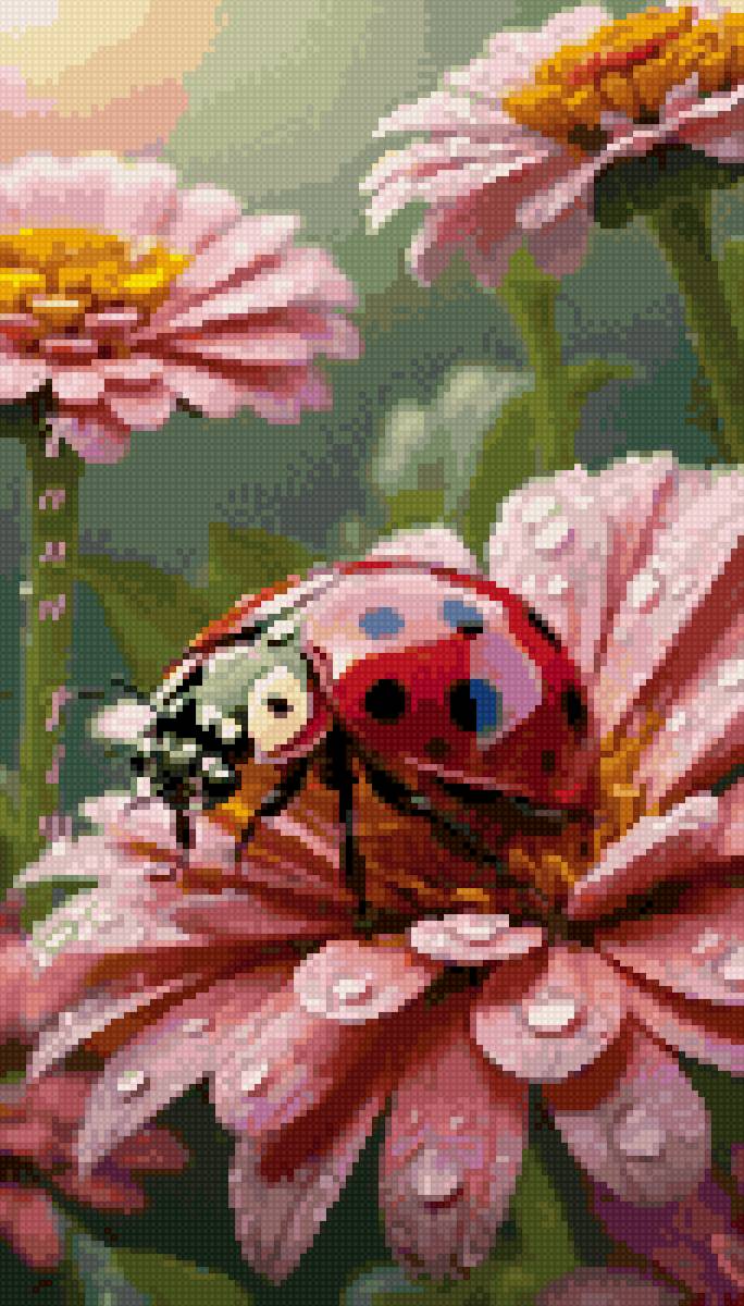Теги: божья коровка, цветок, природа, красота, розовое.