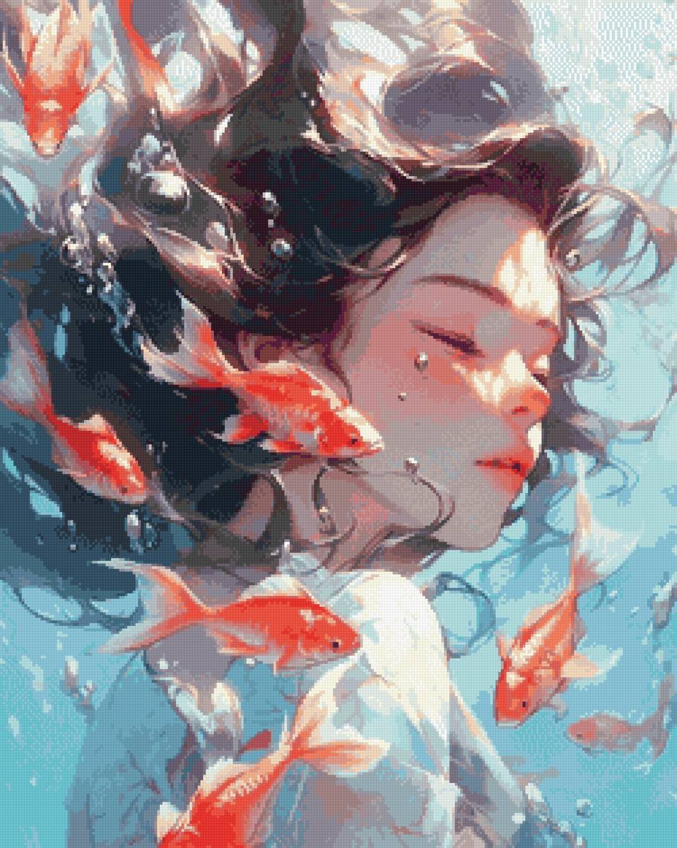 Схема вышивки «Девушка под водой с рыбками» (№2794699)