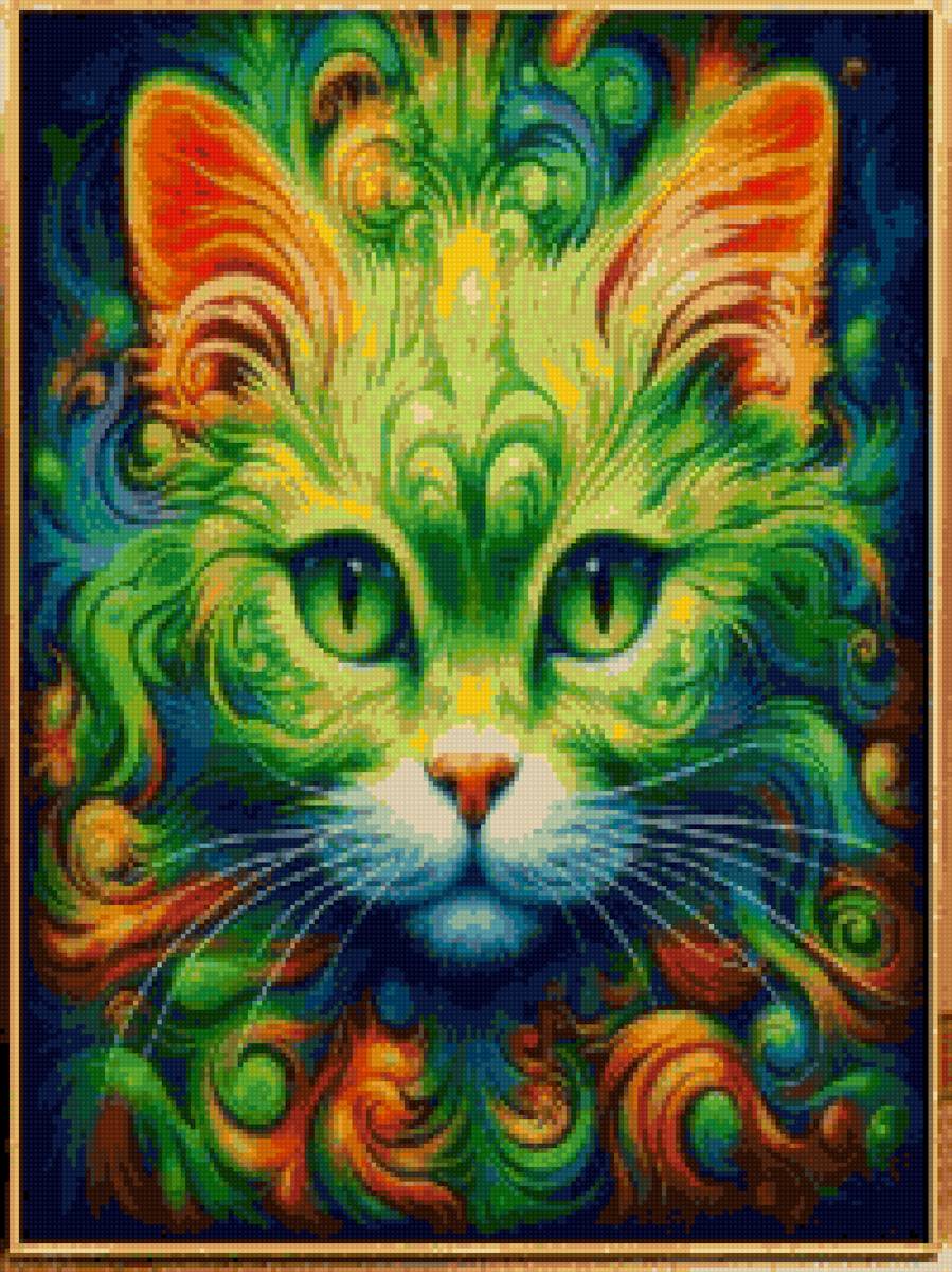 Схема вышивки «Кошка в зеленом цвете» (№2797232)
