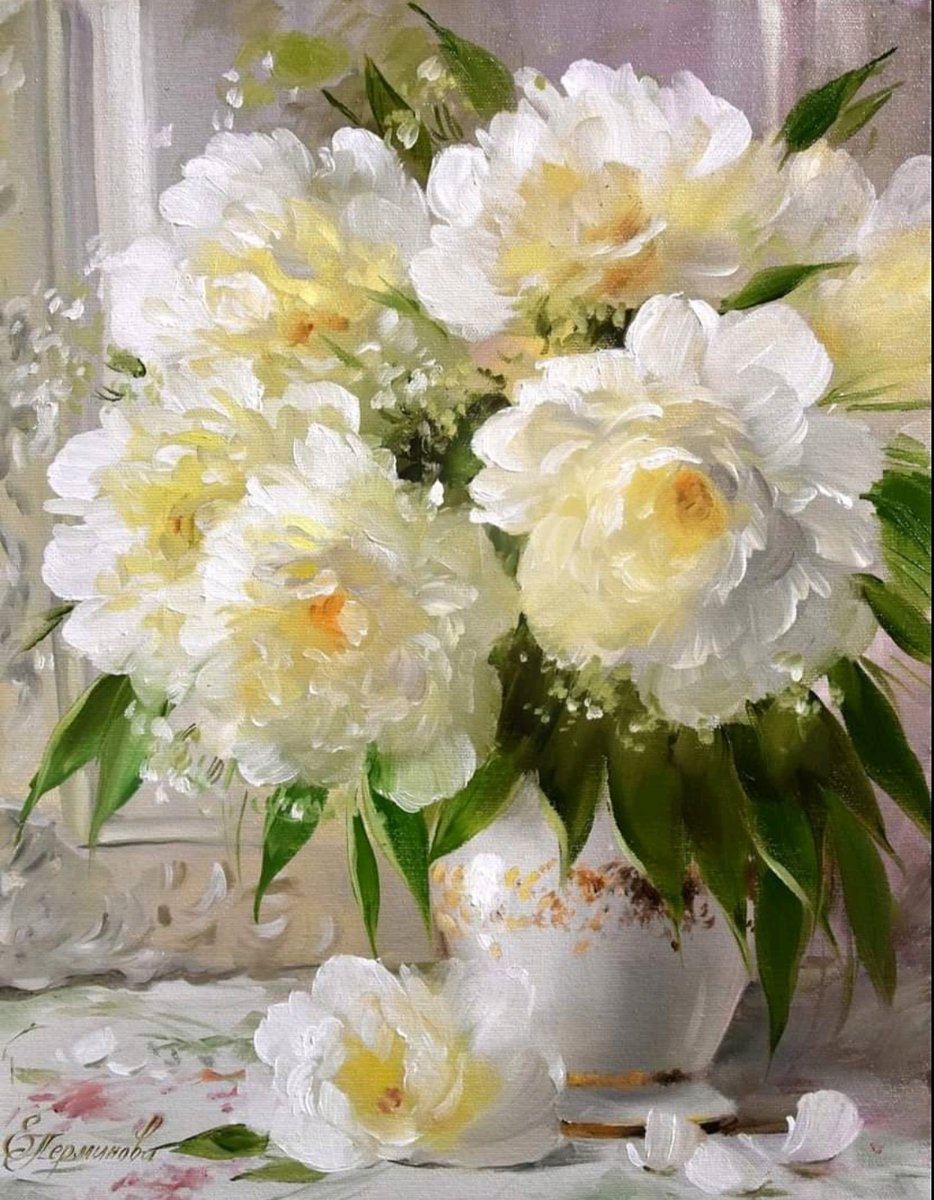 Теги: белые цветы, пионы, тюльпаны, живопись, цветы, розовые цветы, букет.