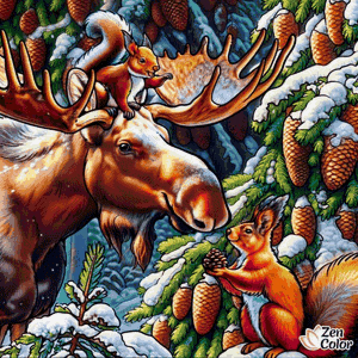 Схема вышивки «Лось с белкой» (№2822808)