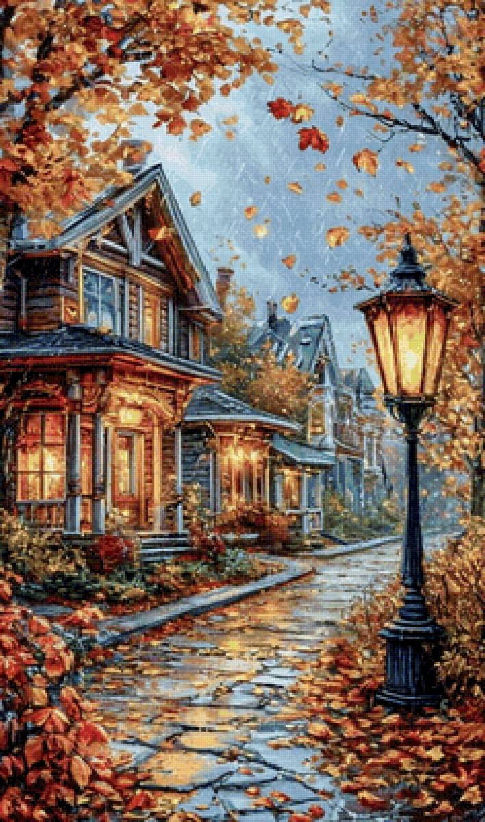 Схема вышивки «осень в городе» (№2825533)