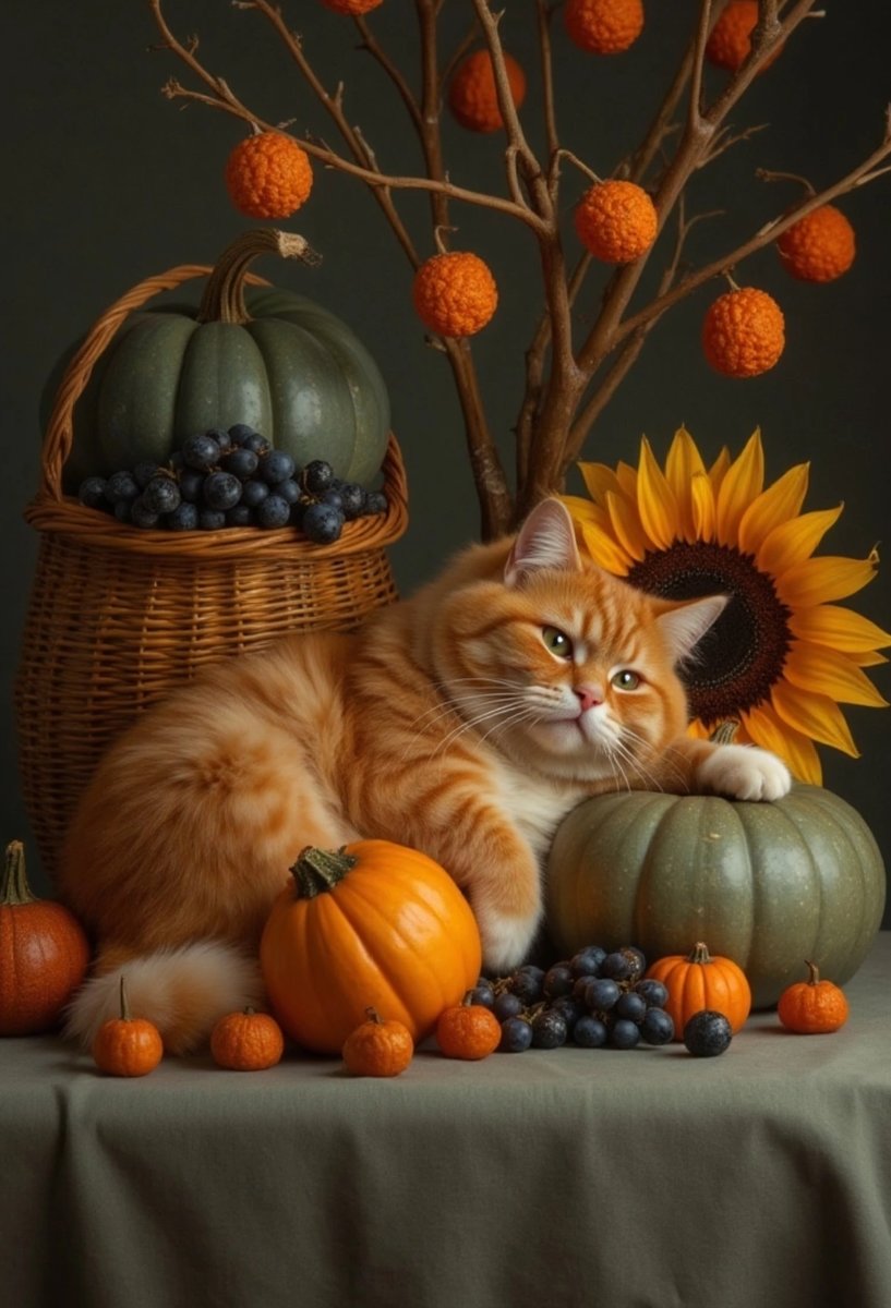 Комментарии к схеме вышивки «Рыжий кот и урожай из нейросети» (№2839452)