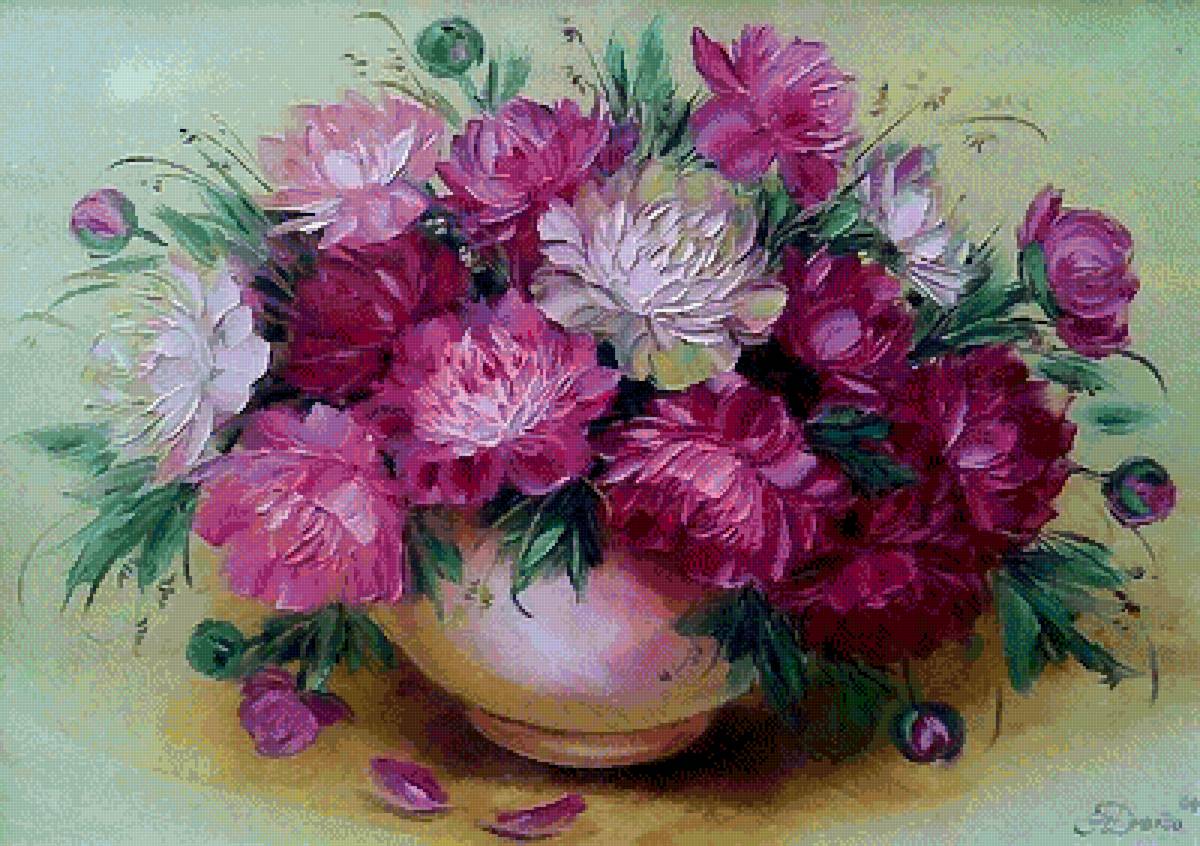 Схема вышивки «пионы» (№2848632)