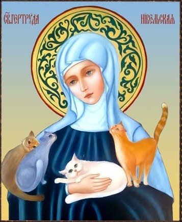Схема вышивки «Святая Гертруда Невельская, покровительницы кошек» (№2855274)