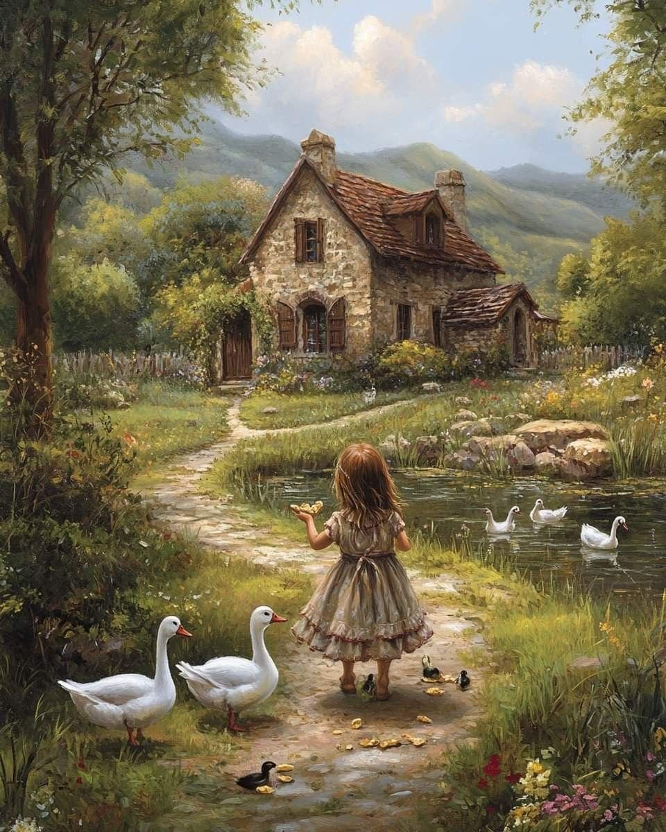 Схема вышивки «child feeding ducks» (№2860318)