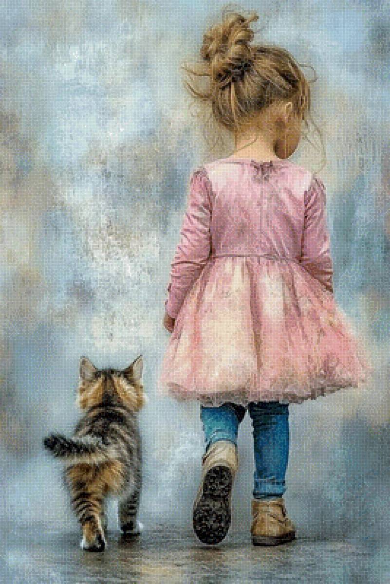 Схема вышивки «Пара девочка и кот» (№2861571)