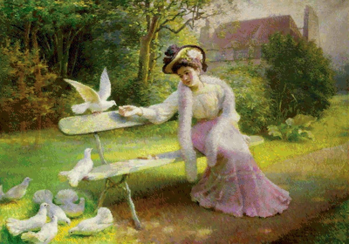 Схема вышивки «Кормление голубей» (№2863483)