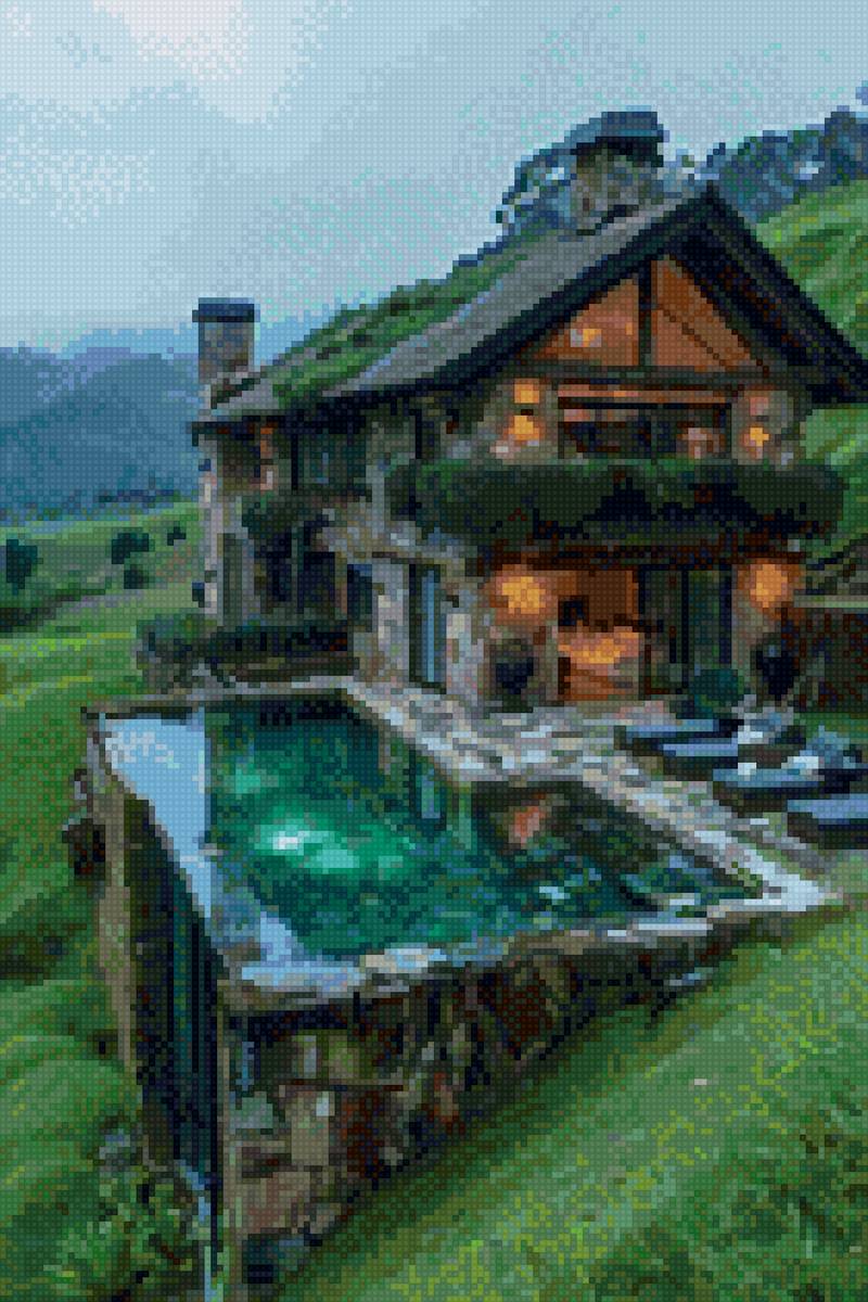 Схема вышивки «Дом в горах» (№2865411)