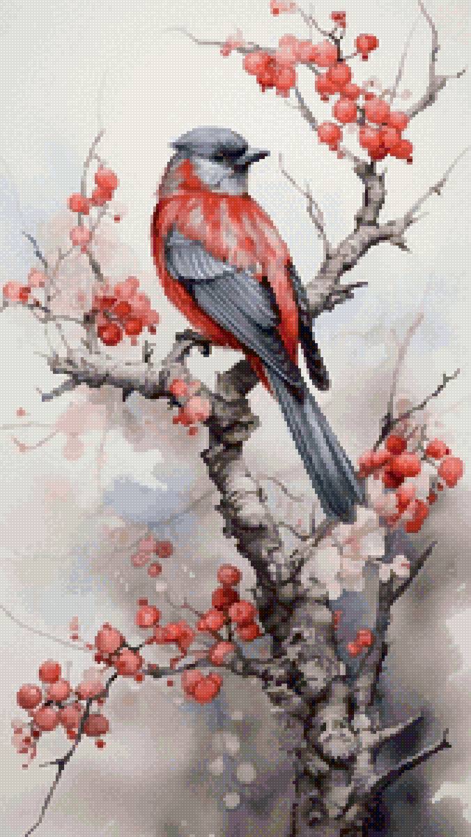 Схема вышивки «Птица на ветке» (№2882181)