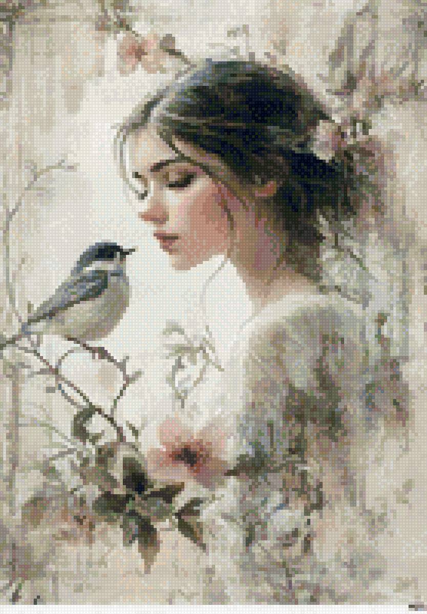 Схема вышивки «Девочка и птица» (№2882418)
