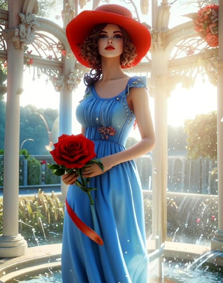 Схемы вышивки, похожие на «Девушка в голубом у фонтана» (№2883862) по сюжету