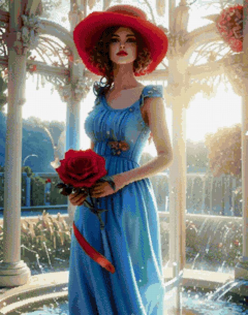Схема вышивки «Девушка в голубом у фонтана» (№2883862)