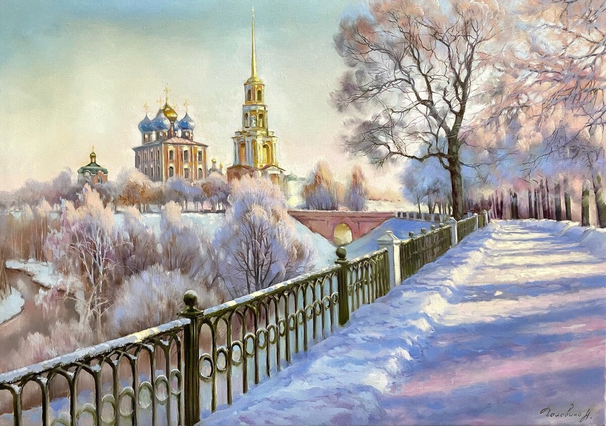 Теги: картина, улица, город, люди, живопись, зима.