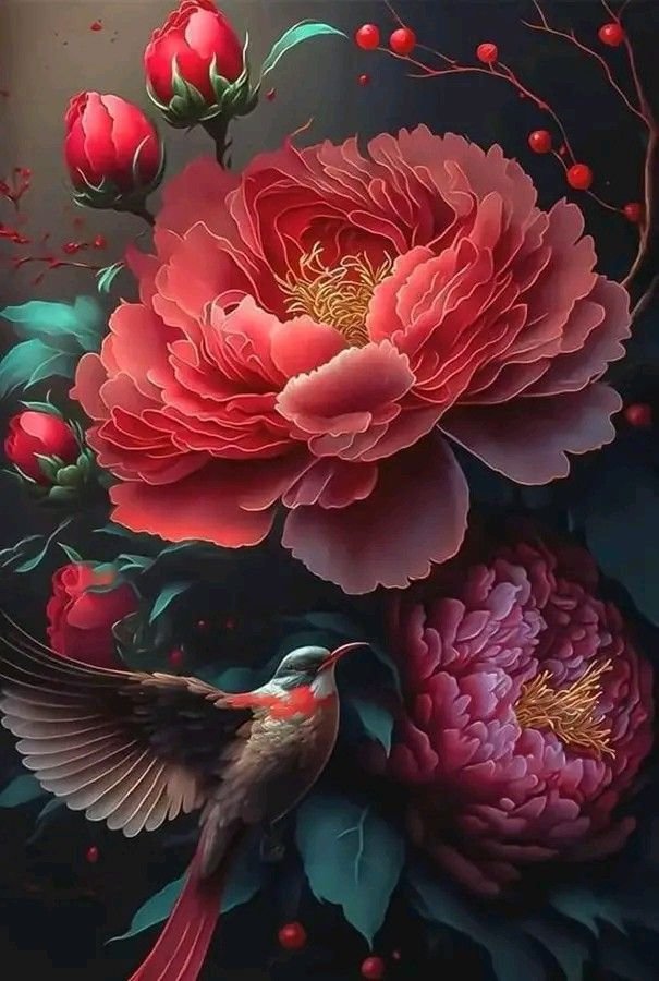 Комментарии к схеме вышивки «Пион и птичка» (№2894463)