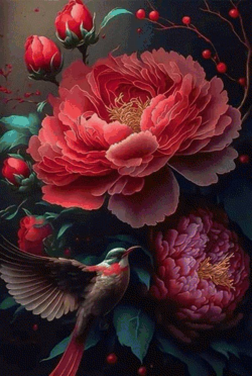 Схема вышивки «Пион и птичка» (№2894463)