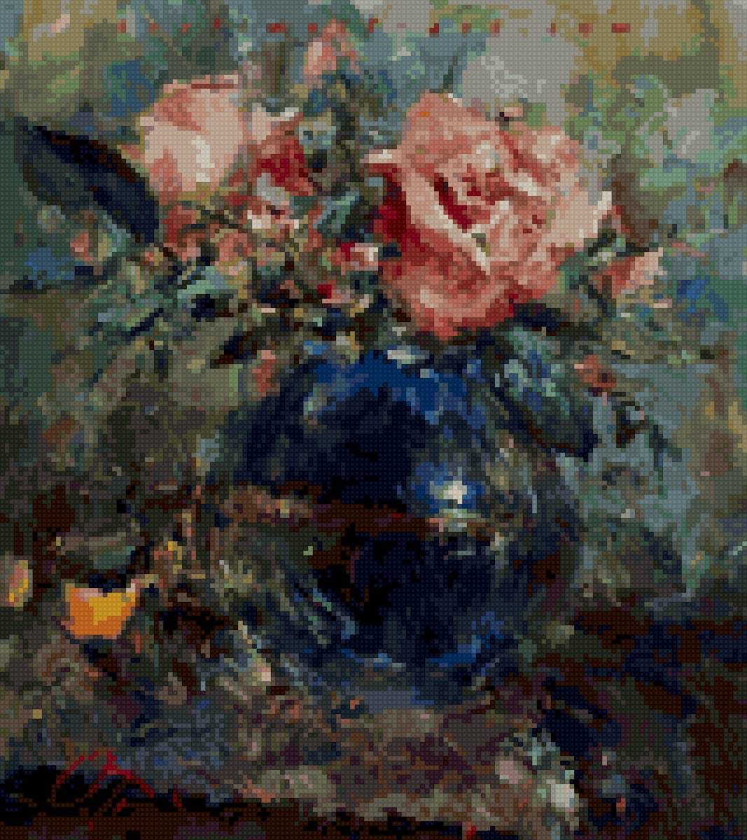 Теги: букет, розы, натюрморт, ваза, красота, картина, цветы.