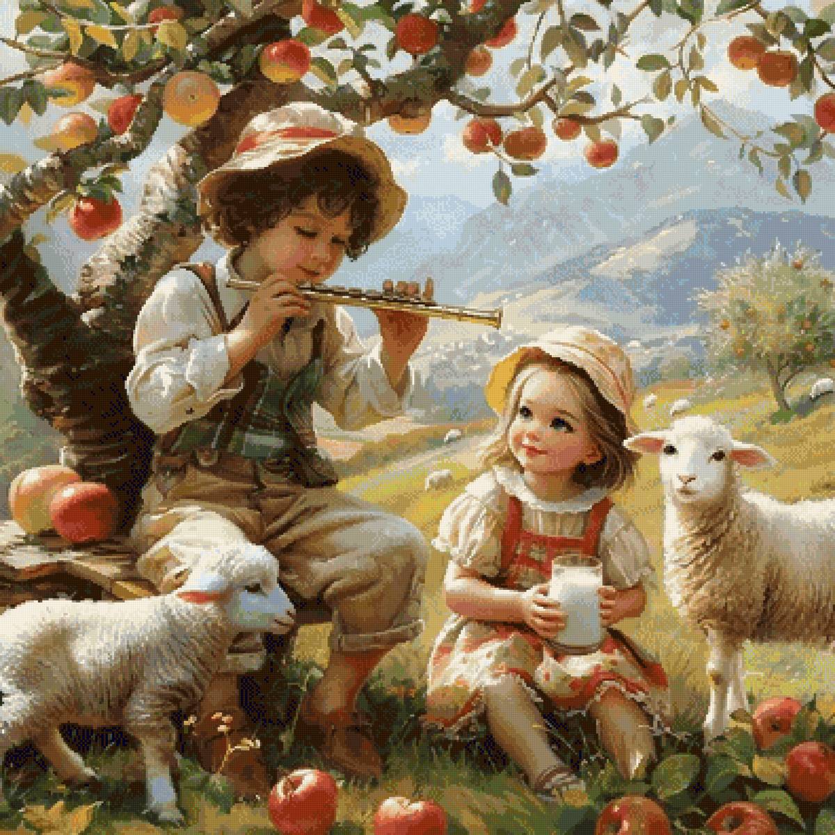 Схема вышивки «юные пастушкИ» (№2903342)