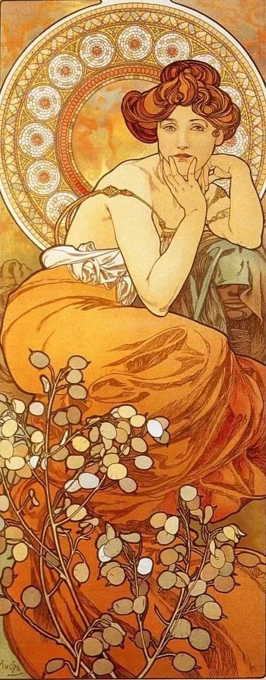 Схемы вышивки, похожие на «Альфонс Муха "Драгоценные камни" "Топаз"» (№2904829) по сюжету