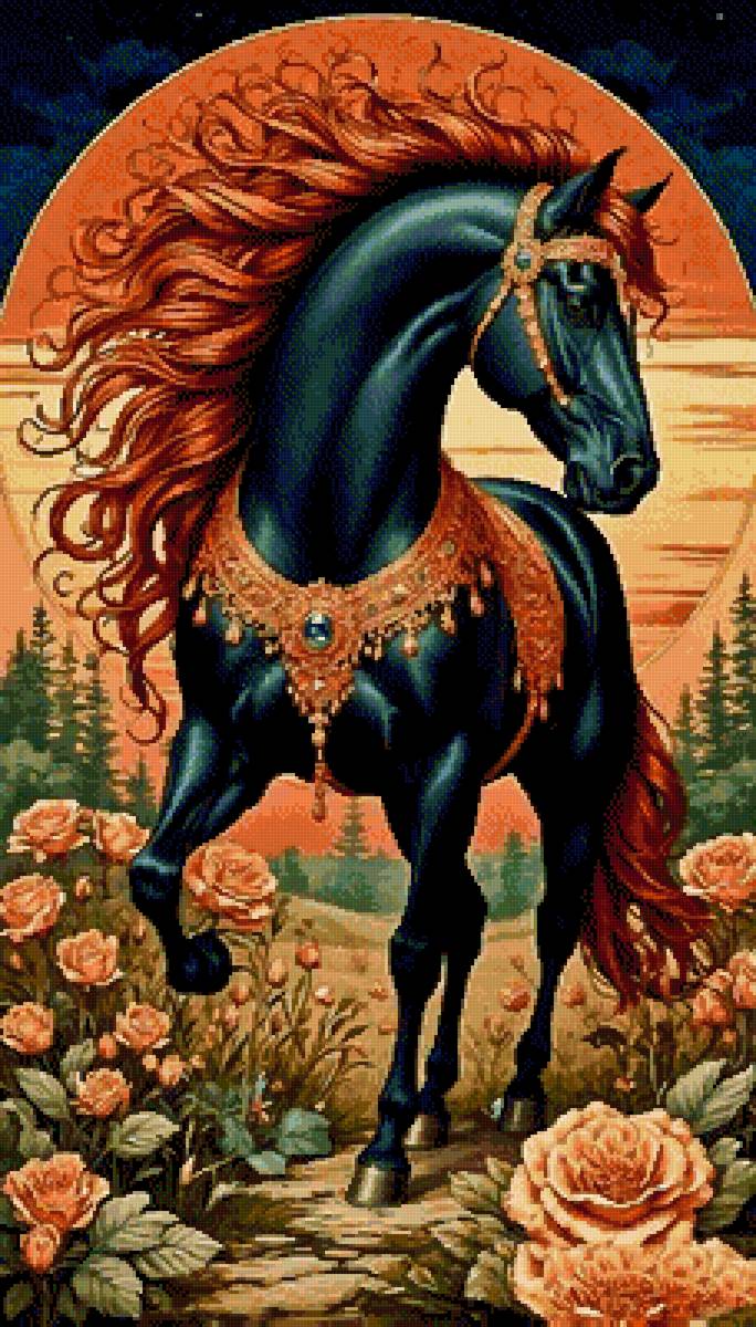 Схема вышивки «Вороной с огненной гривой» (№2912116)