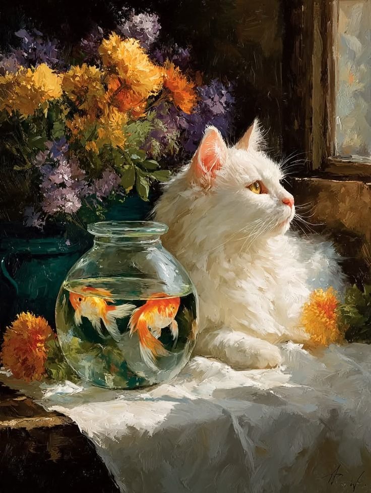 Схема вышивки «Кот с рыбками» (№2918055)