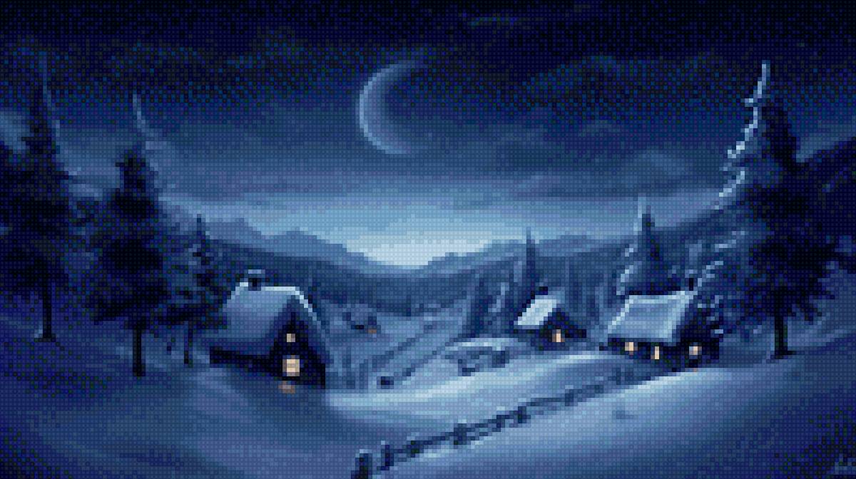 Схема вышивки «Зимний ночной пейзаж» (№2920582)