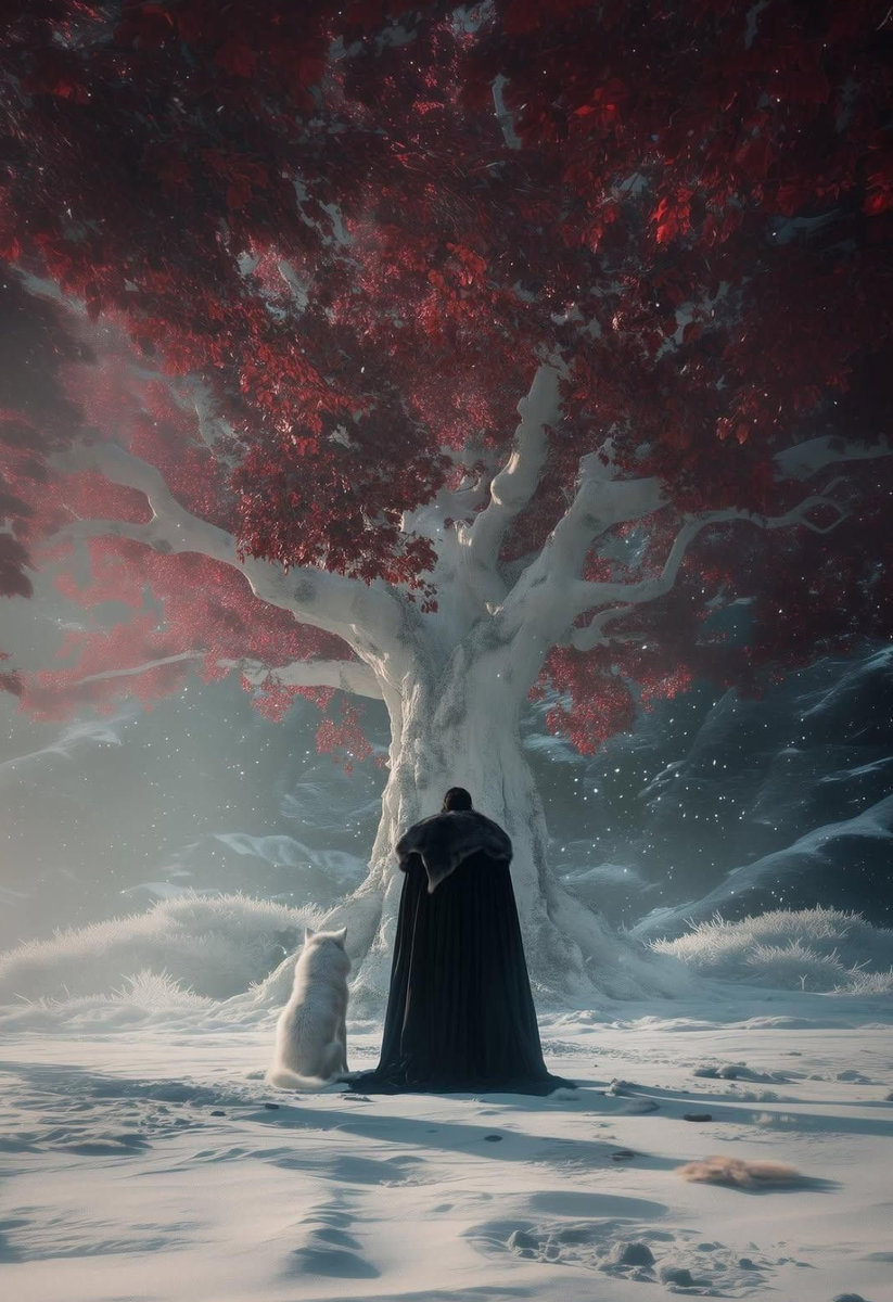 Схема вышивки «Джон Сноу и Призрак в богороще» (№2922541)