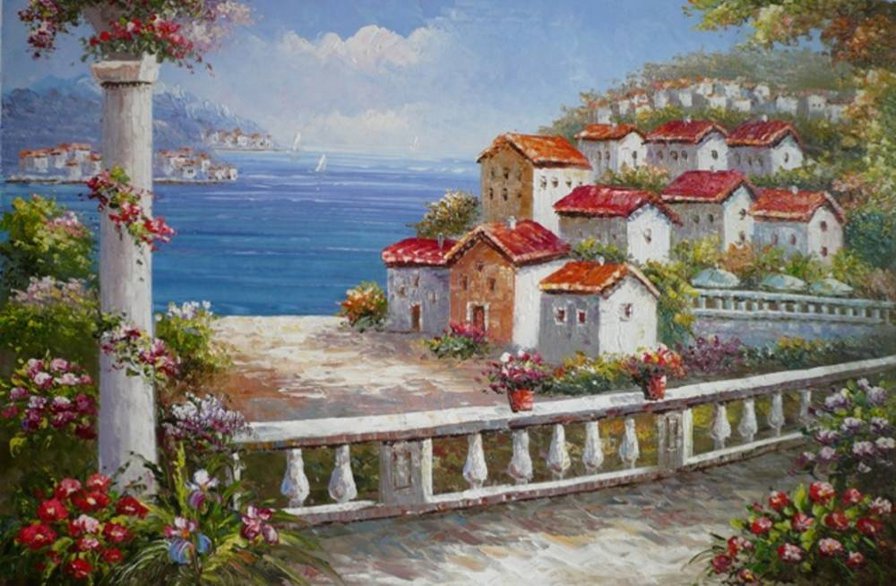Схема вышивки «Пейзаж, море, дворик» (№292492)
