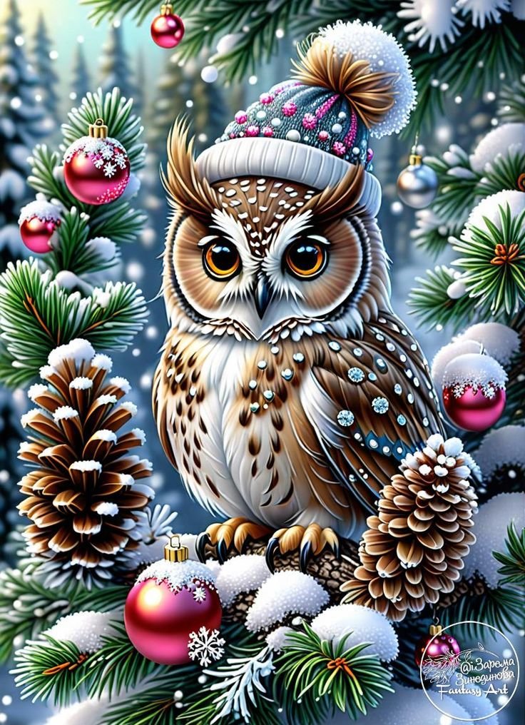 Схема вышивки «сова новогодняя» (№2936195)