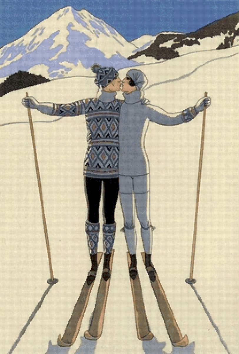 Схема вышивки «Лыжники» (№2937995)
