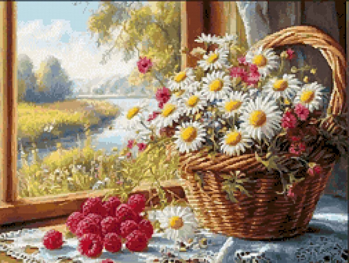 Схемы вышивки, похожие на «Корзина с ромашками» (№2939347) по сюжету
