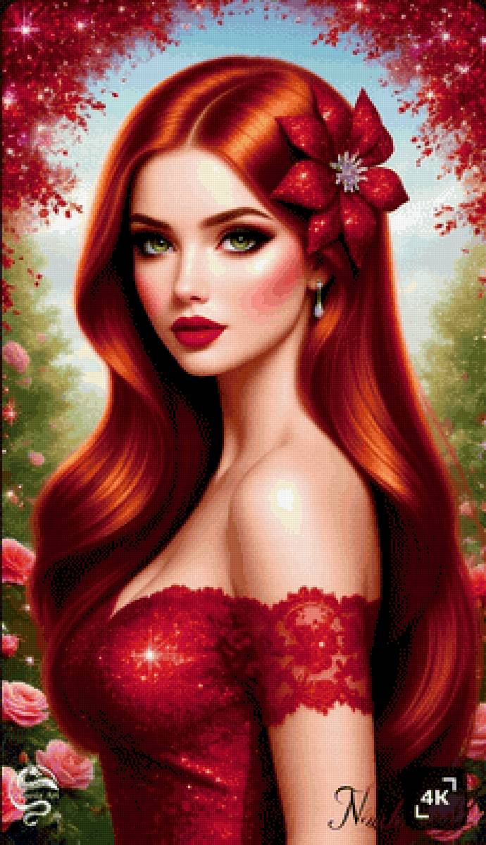 Схема вышивки «Девушка в красном» (№2941434)