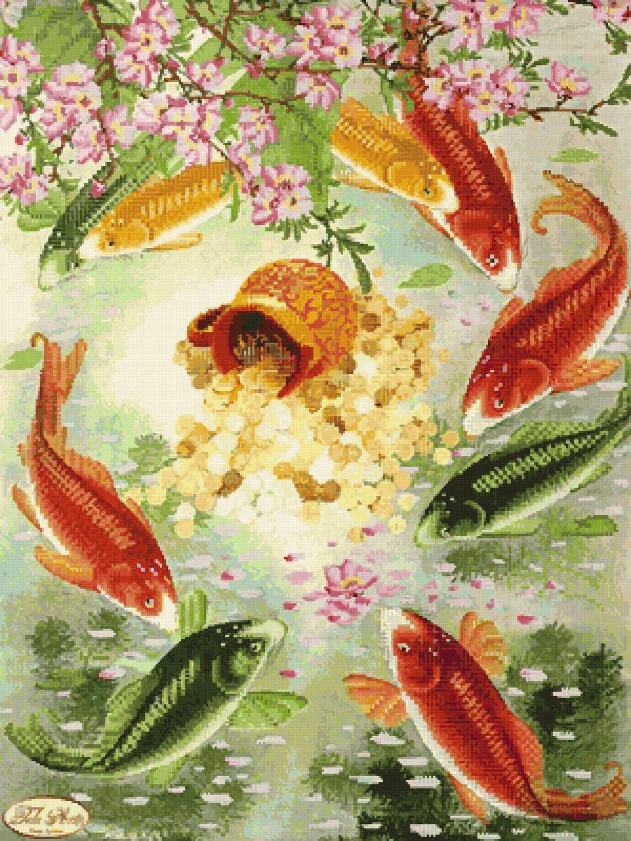 Схема вышивки «Карпы Киа и клад» (№2946226)