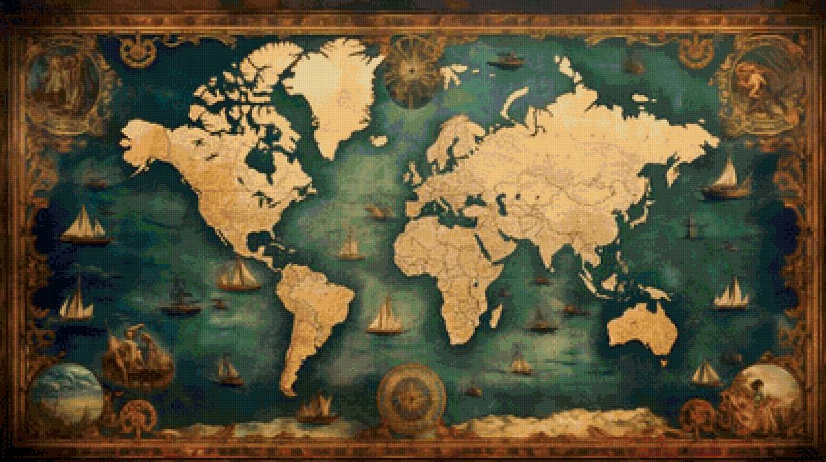 Схема вышивки «Старинная карта мира» (№2946759)