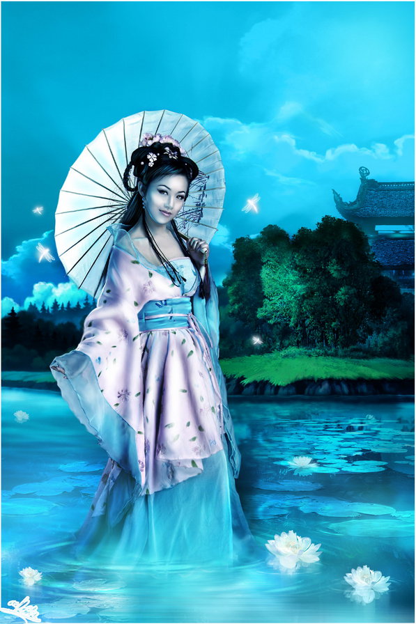 Схема вышивки «Японка в голубом» (№297645)